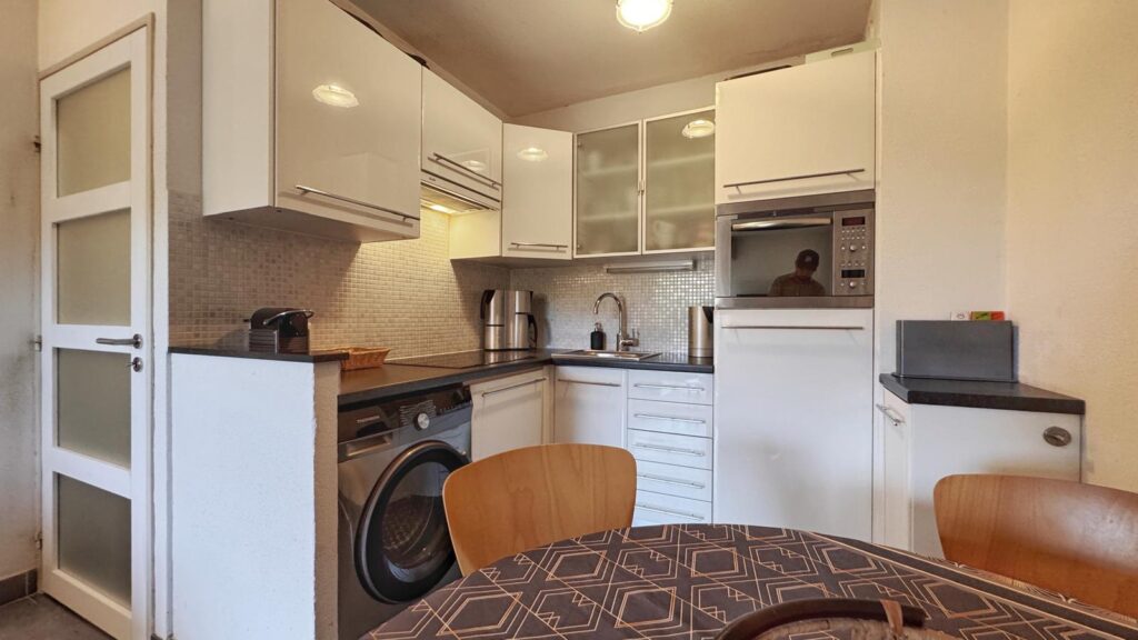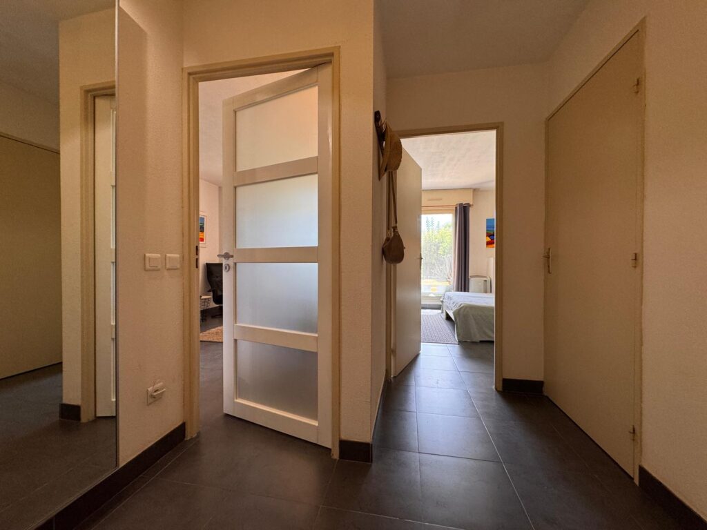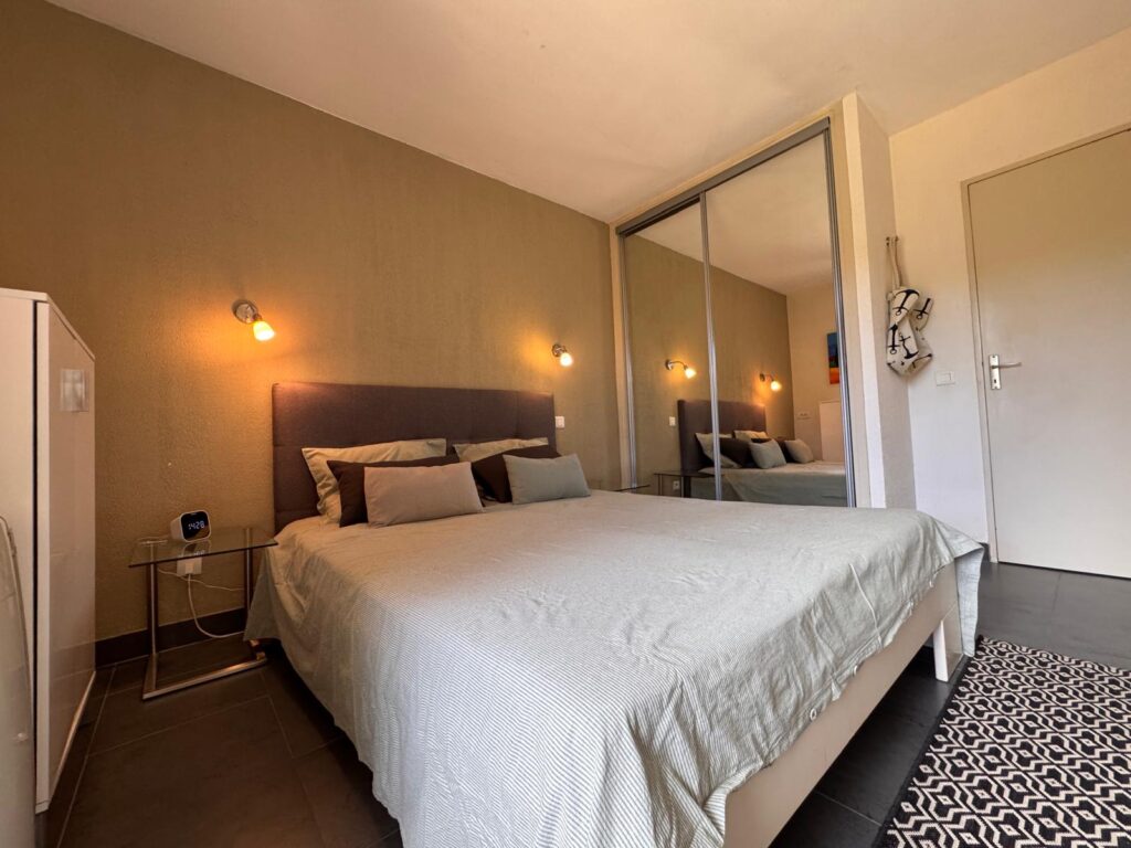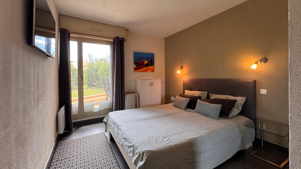 Het appartement beschikt over één slaapkamer, een woonkamer met een ruime slaapbank, een groot terras en een eigen omheinde tuin. De woonkamer, de slaapkamer en het grote terras kijken uit op het residentiepark met palmbomen. Het zwembad is uitsluitend voor bewoners gratis toegankelijk. Het is mogelijk om een privé parkeer plaats binnen de omheinde residentie te reserveren. Er is ook gratis parkeergelegenheid in de directe omgeving van het park. Daar is tevens gelegenheid om een elektrische auto op te laden.